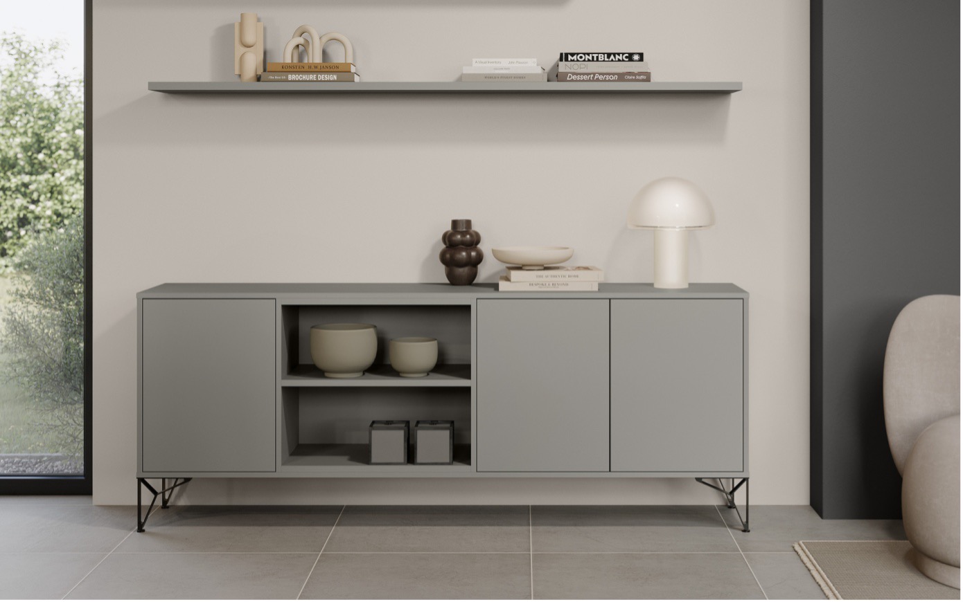 Damit sind sie bestens für den fließenden Übergang von Küche und Wohnraum geeignet. Die ausdrucksstarken Möbelstücke bieten Stauraum und sehen einfach schön aus. Es gibt sie in verschiedenen Ausführungen mit unterschiedlichen Füßen.
