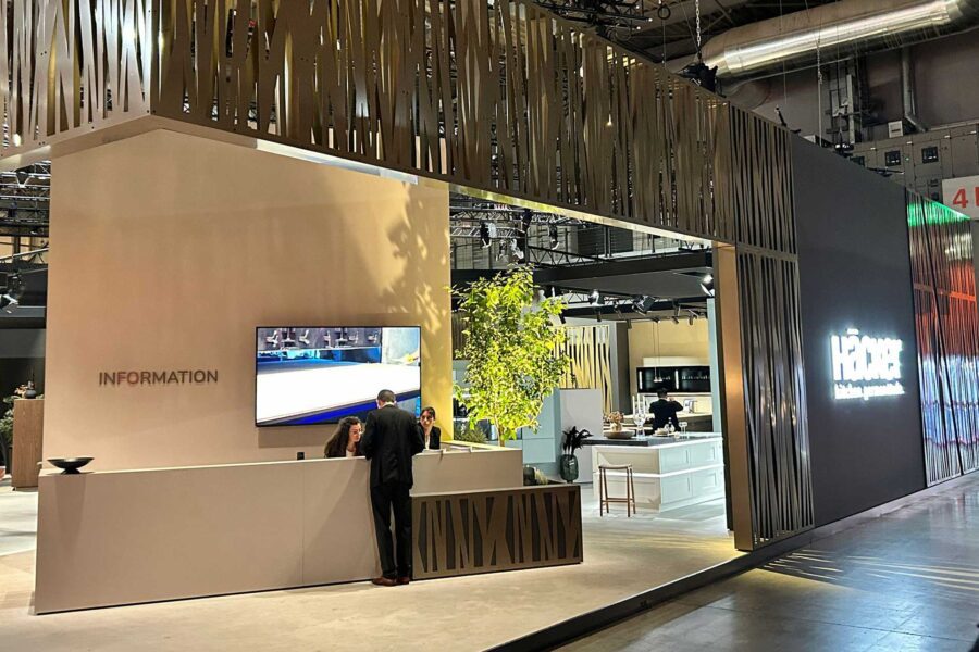 Die Küchenmesse EuroCucina in Mailand präsentiert auch dieses Jahr wieder die neusten Küchentrends, Küchen mit hochwertigen Materialien und individuelles Küchendesign der besten Küchenmarken, unter ihnen die Küchentrends von Häcker. Der deutsche Küchenhersteller zeigt unter dem Motto „Pure Inspiration“ hochwertige Materialien und mit intelligenten Planungen, wie große, aber auch kleine Wohnräume optimal genutzt werden können. Um Wohnräume anspruchsvoll auszustatten, setzt Häcker auf den trendbewussten Einsatz hochwertiger Materialien – vom grün marmorierten Naturstein des Polygons bis zur edlen Rillenfurnier in Eiche-elegant. Hochmodern präsentiert sich Häcker auch mit seiner neuen Innenausstattungsserie in „Black Chrome“. Die schwarz getönten, spiegelnden Oberflächen dieser Serie verleihen dem Interieur eine besondere, exklusive Note, etwa in Form von dunkel glänzenden Tablaren und Griffen. Einige Schnappschüsse vom Messestand.