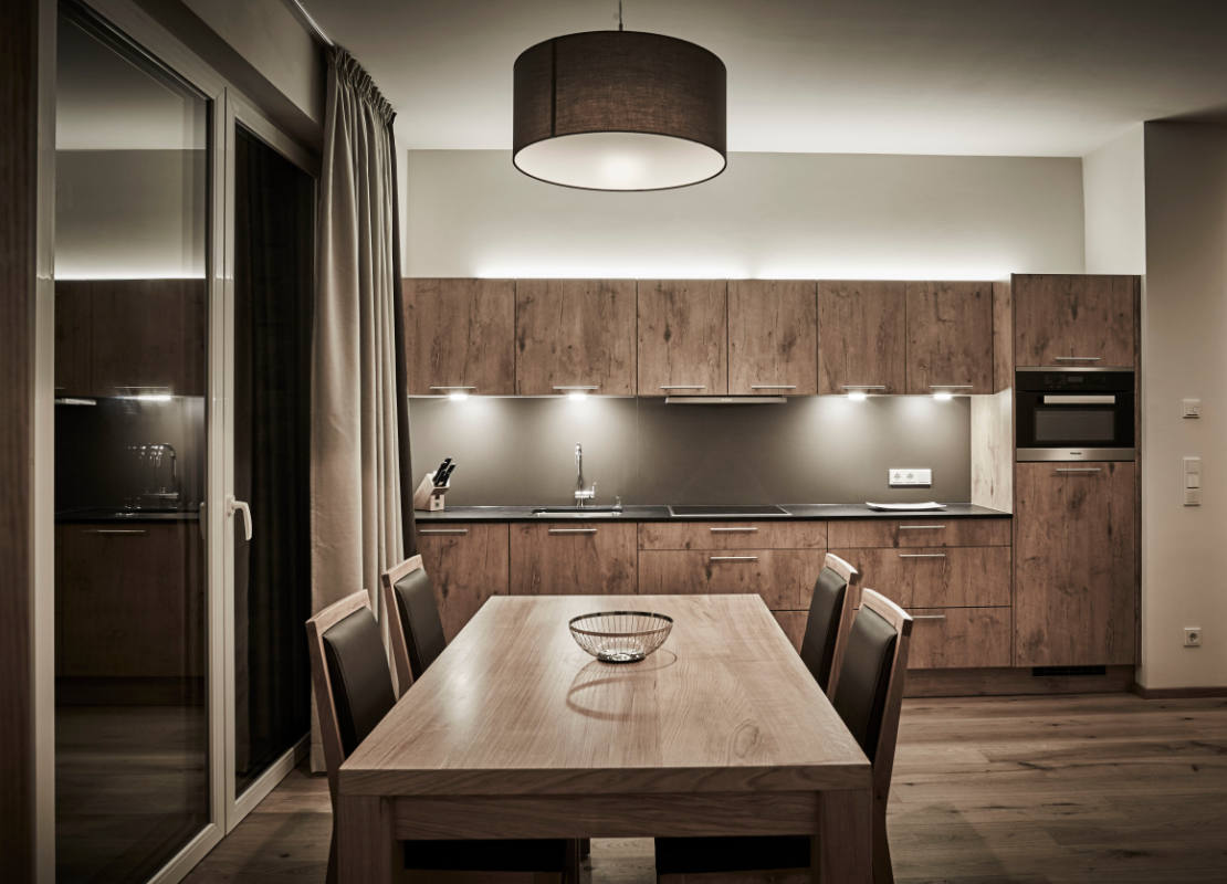 Inmitten von Galtür in Tirol wurde das stilvolle Apparthotel “Silva Peak Residences” mit 18 Miele Center Höpperger-Küchen samt Geräten ausgestattet.